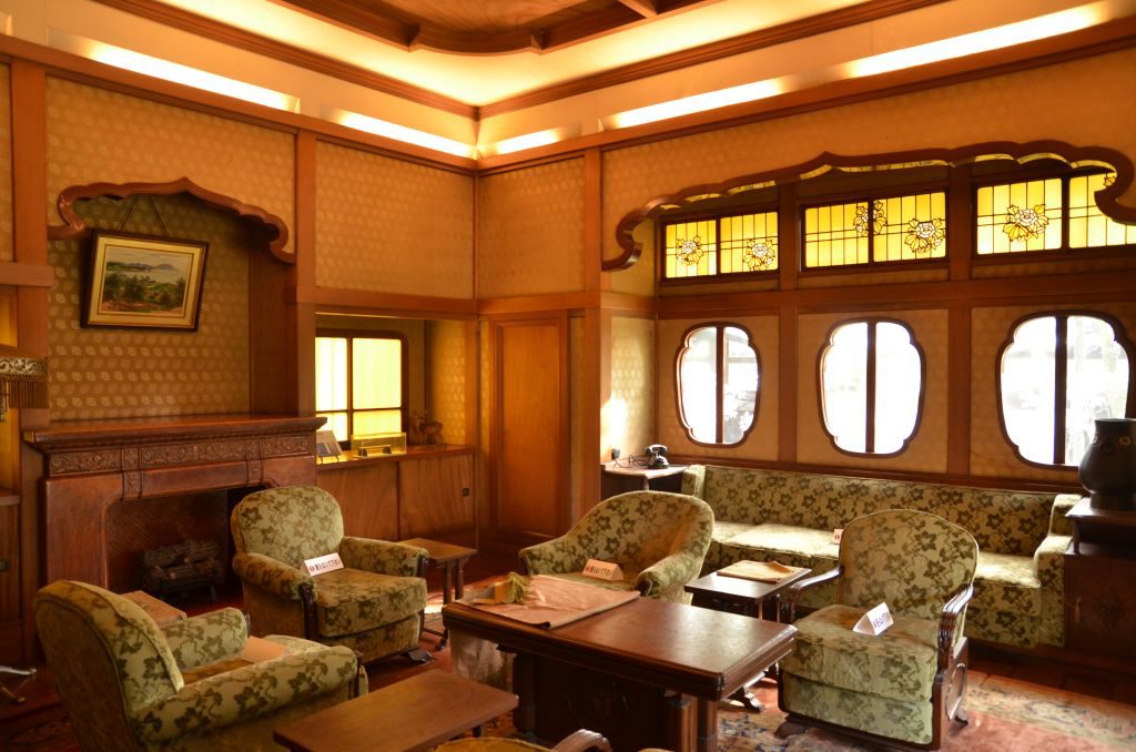 材木商を経営していた森平蔵氏らしく、この邸宅では応接室だけでなく、木に対するこだわりがハンパではない。なんと、邸宅の建築地の隣に何と「製材所」まで建設して建てたのだとか。製材所が隣になかったら、一枚板や一本板の長く広い木材を道路で運べないからだ。