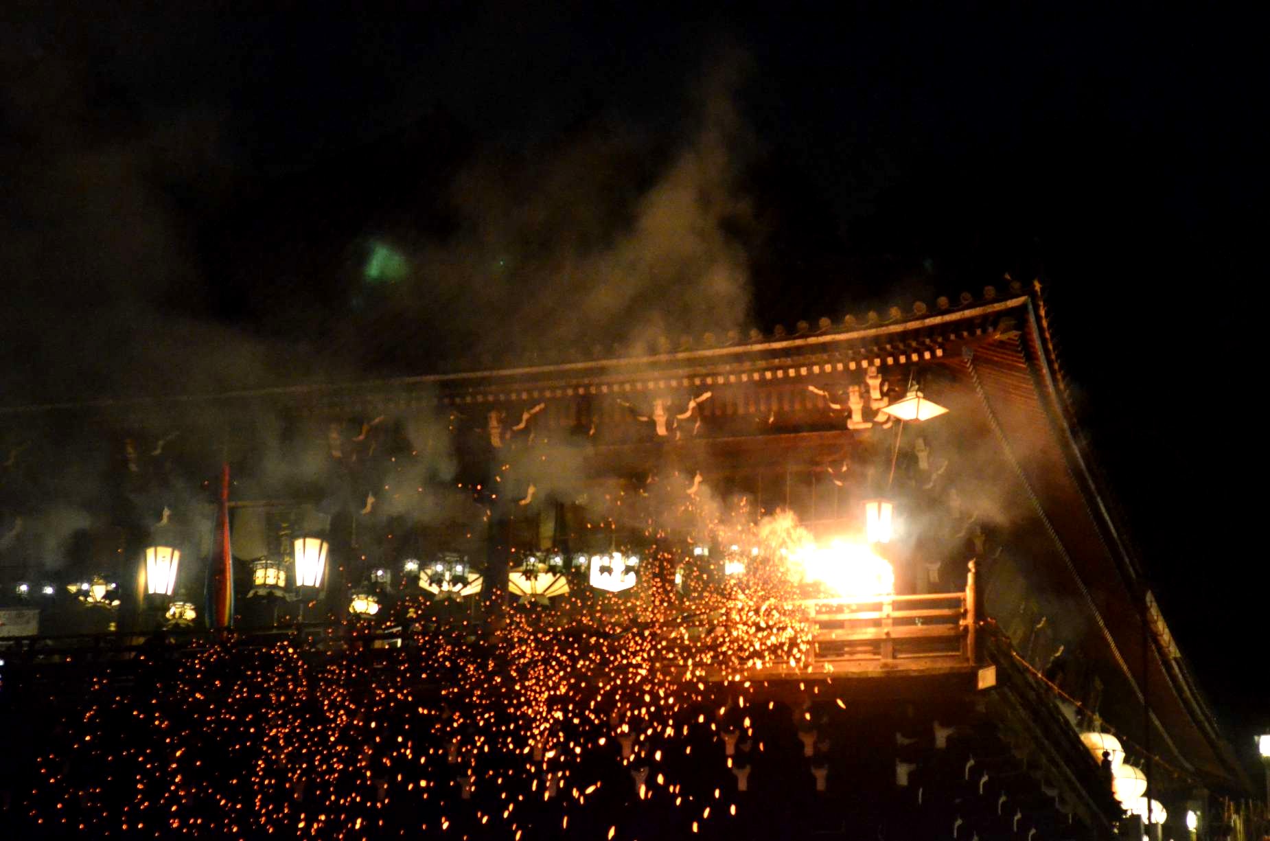 その後、太鼓中の奉納太鼓。前後左右に揺すられても落とされずに「願人」とよばれる叩き手がくらいつくのが見所。
