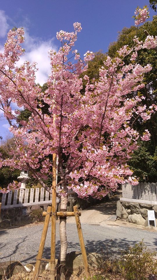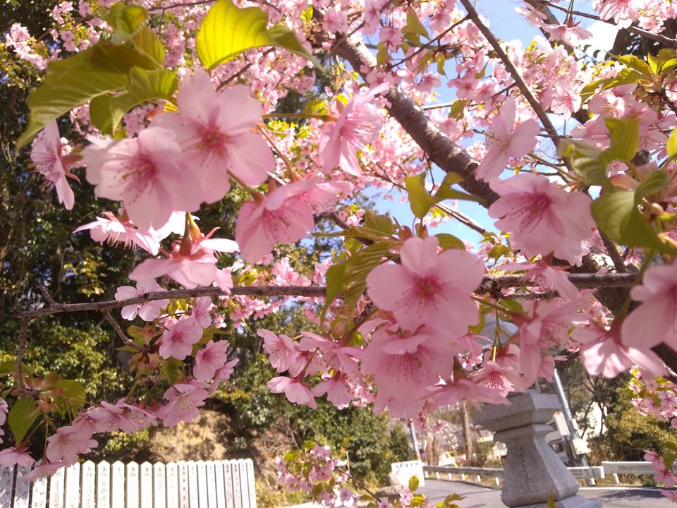 境内の河津桜が満開。