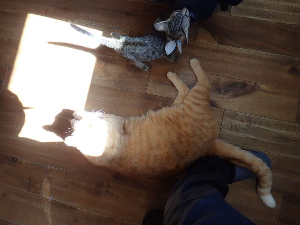 入店してすぐ、店員さんからシステムなどを聞いている間も、猫がこうしてしっぽを私の足下に載せてスリスリしてくるので、説明が頭に入ってきません(笑)