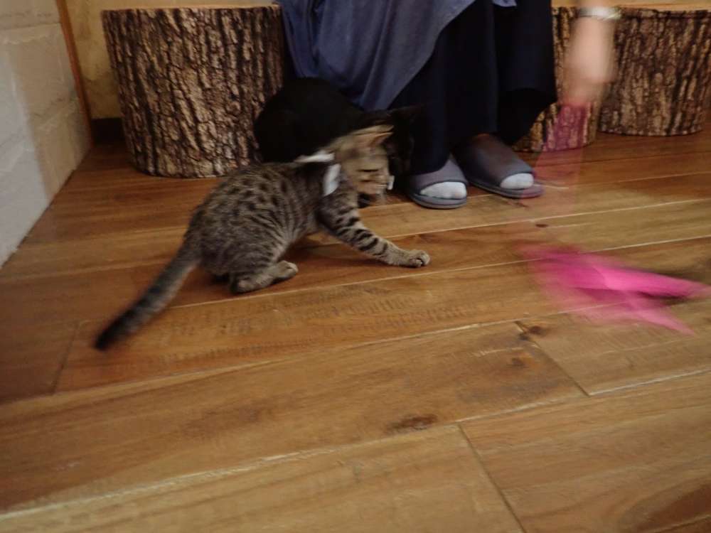 60分はあっという間にたってしまいます。猫じゃらしで遊ぶのに集中するか、写真を撮るのに集中するか、どちらかに絞ったほうがより楽しめるかと思います。(そして中が暗いし猫はすばしっこいので、写真を撮るならスマホカメラやコンパクトデジカメではなく、一眼レフがおすすめです)