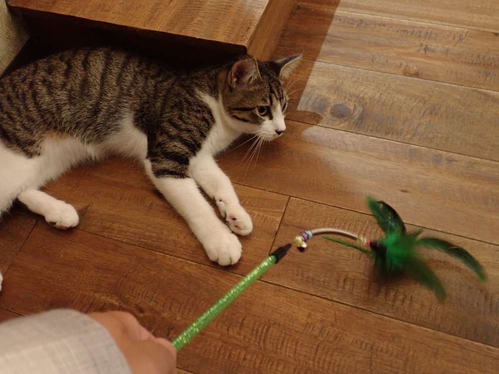 夕方のフリータイムでまったりした猫を眺めるのもいいけど、朝一番で行くと、猫じゃらしに機敏に反応してくれる元気で活きのいいニャンコと遊べるのが魅力。