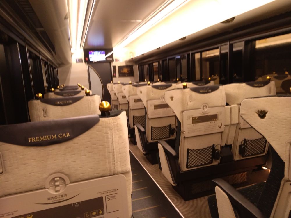 この2月から、「青特急」にもプレミアムカーが連結されるようになった。その分、青特急の一般車両が混雑して座りにくくなったわけですが。
