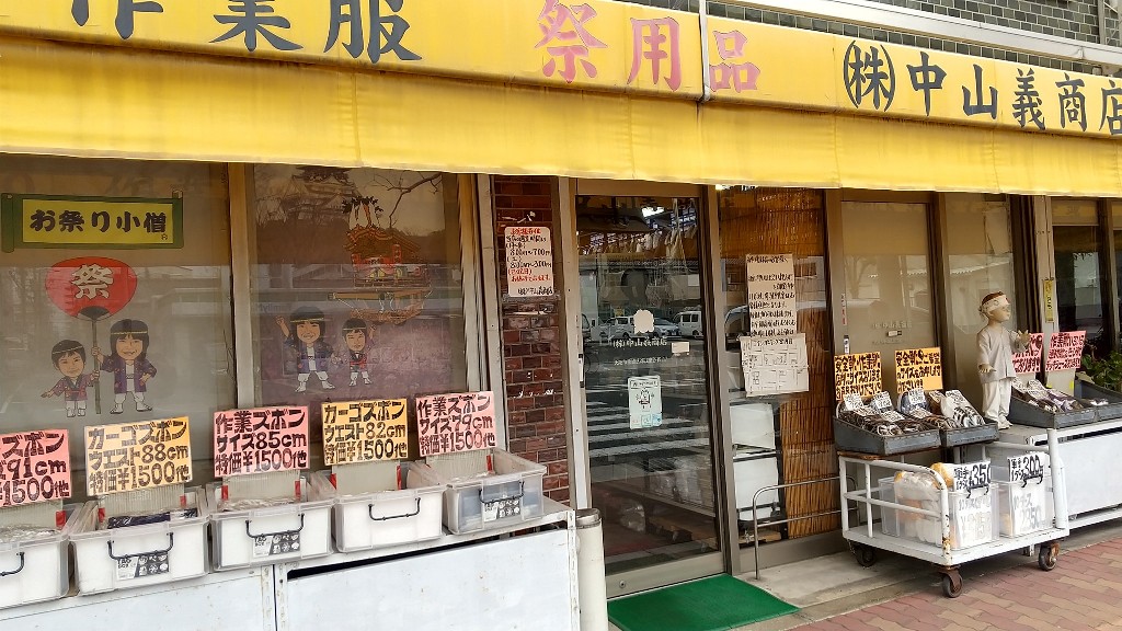 ここがなくなると、ダボシャツや股引や鯉口シャツや法被のオーダーといった、祭り特有の専門的な商品を買えるのが通販となってしまう。平野区のお祭り用品店は2020年1月より休業らしいし、岸和田だとどうしても泉州地区で使われるグッズが中心になる。