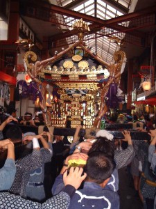 お昼前後、浅草寺裏の駐車場に神輿が集結するのは圧巻です。担ぎ手さん以外は中に入れないかもしれませんが・・・