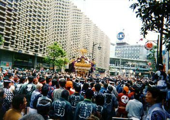 【町内巡行】 一休みの間、汗ばんだ身体にKIOSKで買ったビールが美味い。神輿が町 内へ出ていきます。このあたり、住人が少ないので、町会渡しと言う訳にはい かないでしょう。ずっと、同じ連中で担いでいきます。但し、各町会半纏を着 た担ぎ手が、なるべく前を担ぐようになっていますが。さっきまで、多すぎる くらいいた担ぎ手がぐっと少なくなりました。これも、例年とおりです。で も、一昨年のときは6日が振り替え休日で、「くらやみ祭」も行きやすかった ですし、重なっていた「三崎町」も今年はずれていますし、と言うことで担ぎ 手が不足という感じまではしませんでした。 夕方迄、新橋各町内を大神輿は練り歩き、最後に赤鉢が前を固める「宮入 り」もつつがなく終り、ゴールデンウィークの神輿は終ったのでした。 【ゴールデンウィーク明けに】 6日の夕方、15分ばかり会社を抜けて、新橋の駅前に買い物にでました。 実は昨日、皆で乗って来た車を止めるのにガードマンさんに無理を聞いてもら ったので、お礼に警備室に菓子折りを届けるためにです。 あれっ?駅前に神輿がいますね。やはり、八棟造りの中神輿です。御菓子屋 さんで聞いて見ると今日も夜に町会の神輿が出るんだそうです。くそっ 気が つかなかった。「まっしかたがない。支度はなんにもしてきていないし。」 でも、仕事が終って夜八時、新橋駅前に廻って見ました。「いたいた」丁 度、神酒所の前に、神輿が帰って来たところでした。担ぎ手を見てみると、昨 日三崎町で一緒だった皐月会の人がいます。 「ごくろうさまです」 「あれっどうしたのその格好は、ちゃんとかついでよ。」 「かんべんしてよ、今日は一日仕事だったんだから」 結局、景気付けのコップ酒を一杯いただき、裸足になって、背広・ネクタイ 姿の上から、半纏を羽織って、15分ばかり担がせてもらいました。もちろん そんな格好で担いだ人間は他には全く居ませんでしたけどネ。 ゴールデンウィーク明け最後の神輿でした。 結局3日連続。今日も足が少々痛みま〜す。 はっちゃん @NIIZA saitama QZM02610 でした。 |