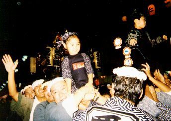 最初は、まだ明るい商店街を、T字型に往復して担ぎます。屋台等は出てい ますが、イマイチ盛り上がりに欠けます。まあ、今はまだ景気付けです。最初 に飲んだビールを醒まさないといけませんし。大きさ約2尺6寸、唐破風屋根 の神輿は今年は担ぎ棒を新調したようで、新しい白木のいい香りがしていまし た。 暗くなり堤灯に灯が入り、屋台にも人が出てくるようになると、祭の本番で す。やはり、夏の神輿は夜に限ります。 住民の高齢化の波と、大手スーパーの攻勢で、歯抜けも目立つ商店街なので すが、空いたところを、神酒所、接待所、警備本部等にうまく割り当て、寂し さを感じさせないように、うまくカムフラージュしていました。屋台のおじさ ん、お姉さんも呼び込みが上手ですし。 久し振りの参加の「祭道」のS君も家族で参加。祭支度のお嬢さんを神輿に 乗せて端を担いでいました。いかにもローカルな、ローカルならではの、ほの ぼのとした祭でした。 そして、3日連続の神輿、痛い足ながらも使う筋肉が違うようで、なんとか 無事担ぐことが出来ました。 |